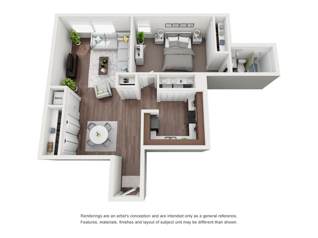 1 Bed 1 Bath - Plano 1 J Floor Plan