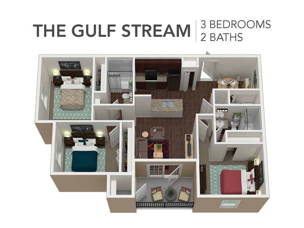 Modelo de apartamento: The Gulf Stream3 Dormitorios, 2 Baños, 1153 sq ftNo Disponible![]()