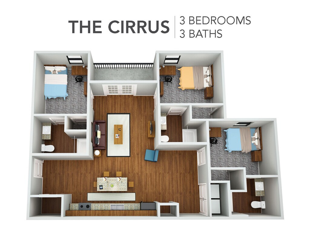 Modelo de apartamento: The Cirrus3 Dormitorios, 3 Baños, 1344 sq ftNo Disponible![]()