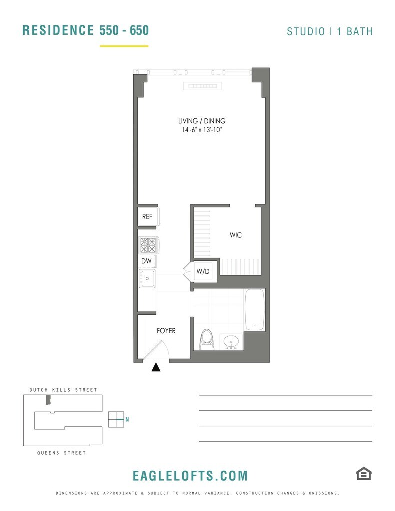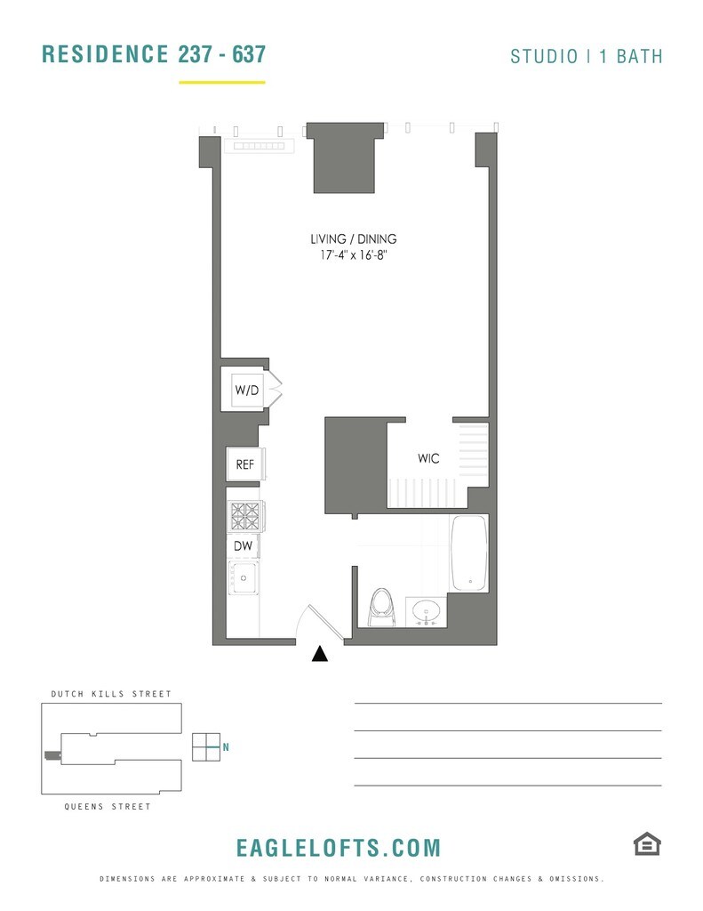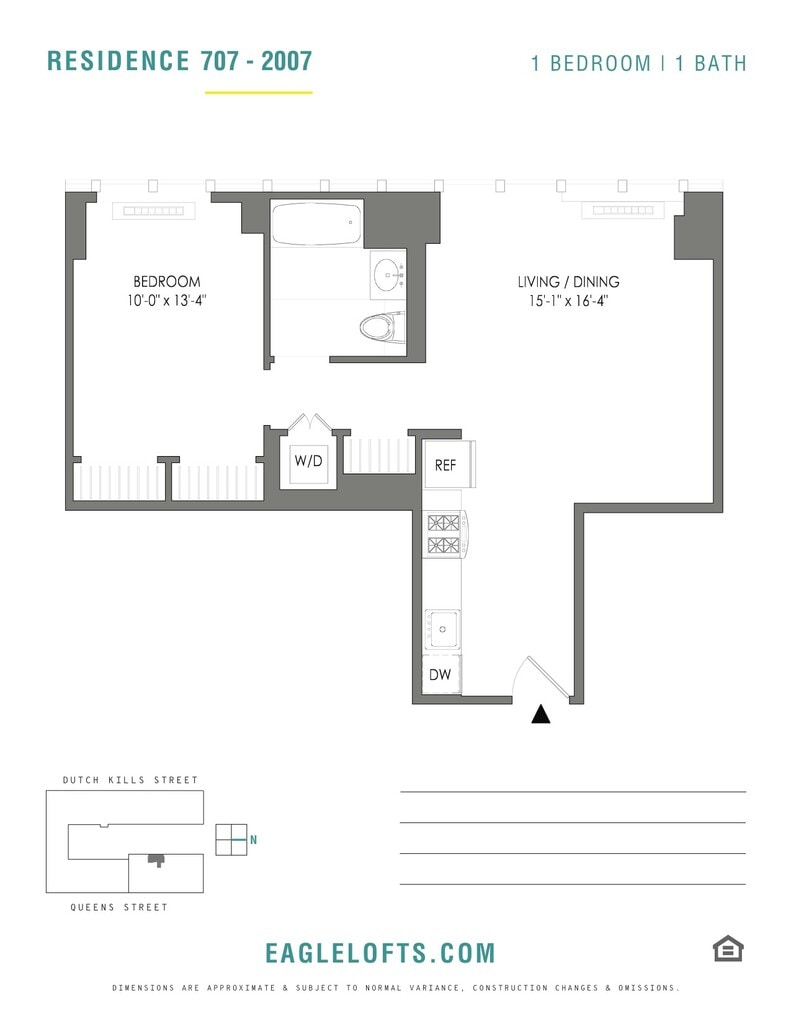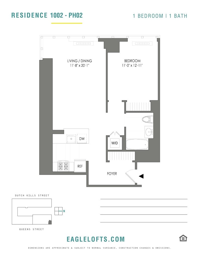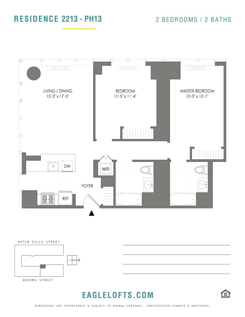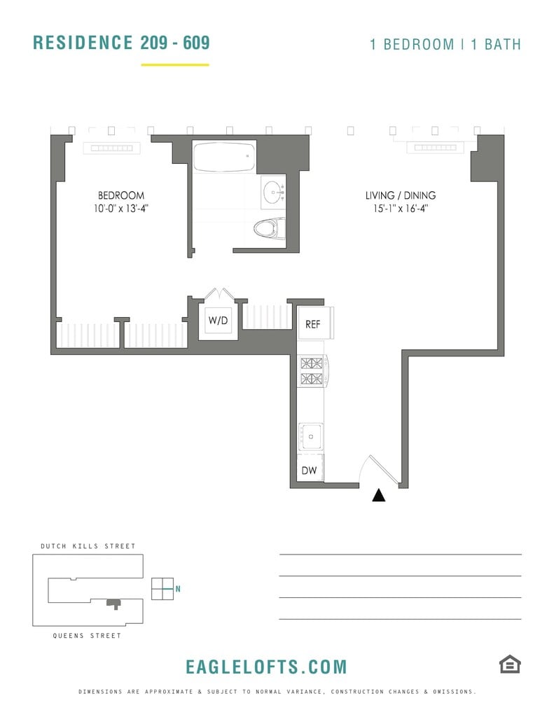 Eagle Lofts es un nuevo edificio de lujo con amplios apartamentos tipo estudio, de una y dos habitaciones. Las residencias tienen pisos de tablones de madera, ventanas de gran tamaño, y lavadora/secadora en todos los apartamentos. Las cocinas gourmet tienen encimeras de cuarzo y electrodomésticos de acero inoxidable, y baños tienen pisos de cerámica italiana. Numerosas comodidades incluyen un gimnasio de dos pisos, varias salas de estar, estudio de trabajo, sala de billar y sala de juegos, sala multimedia y mucho más. Escapa a tu oasis al aire libre en la gran terraza de la azotea y parrilla con amigos y vecinos. Convenientemente ubicado en el transporte rica Court Square, Queens, está a minutos de distancia de 7 líneas del metro, y un viaje diario rápido a Manhattan. Apartments en planta superior en la torre con luz natural y vistas están ahora disponibles! Vive original.