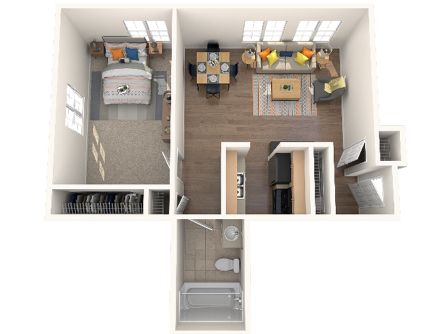 1 Dormitorio, 1 Baño, 750 pies²Precio Mensual TotalDisponible Oct 17Galería del Modelo