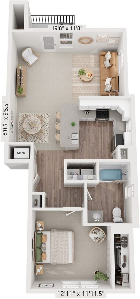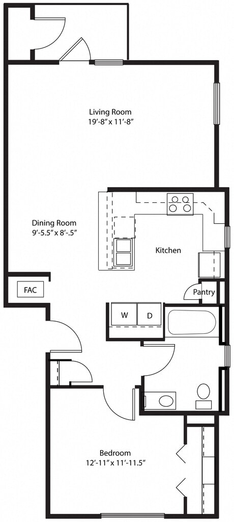 1 Dormitorio, 1 Baño, 836 pies²Galería del Modelo