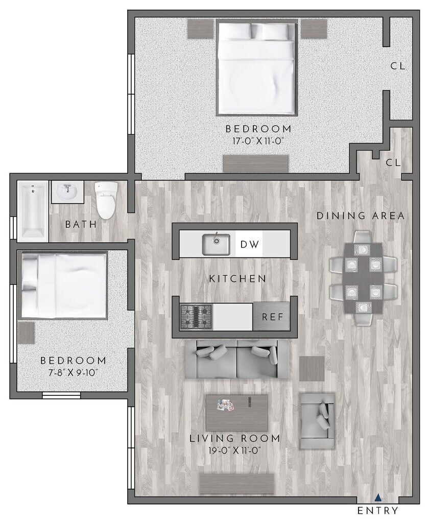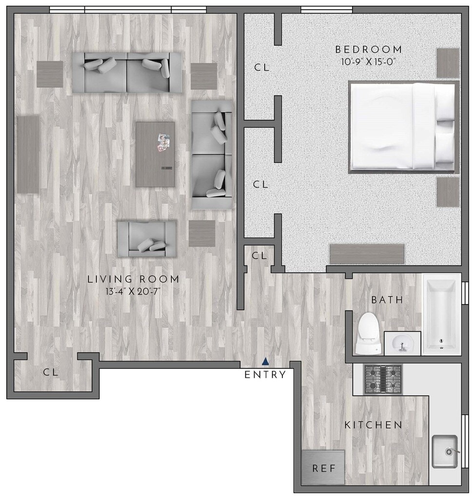 1 Dormitorio, 1 Baño, 736 pies²Disponible AhoraEl más grandeEsta opción tiene las unidades más grandes para este modeloGalería del Modelo