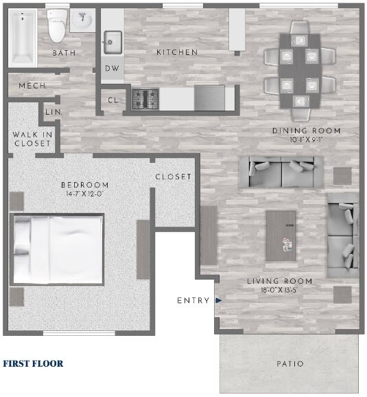 1 Dormitorio, 1 Baño, 765 pies²Disponible AhoraGalería del Modelo