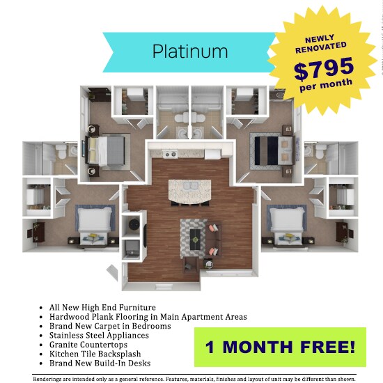 Modelo de apartamento: Platinum$7954 Dormitorios, 4 Baños, 1384 sq ftDisponible AhoraPlatinum - Plano 1 Unidad de apartamento: PrivateModelo de apartamento: Platinum$7954 Dormitorios, 4 Baños, 1384 sq ftDisponible AhoraUnidad de apartamento: PrivateModelo de apartamento: Platinum$7954 Dormitorios, 4 Baños, 1384 sq ftDisponible August 12, 2026Essential