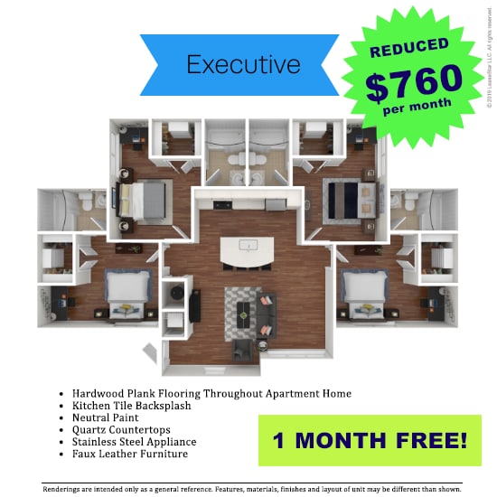 Modelo de apartamento: Executive$7604 Dormitorios, 4 Baños, 1384 sq ftDisponible AhoraExecutive - Plano 1 Unidad de apartamento: PrivateModelo de apartamento: Executive$7604 Dormitorios, 4 Baños, 1384 sq ftDisponible AhoraUnidad de apartamento: PrivateModelo de apartamento: Executive$7604 Dormitorios, 4 Baños, 1384 sq ftDisponible August 12, 2026Platinum