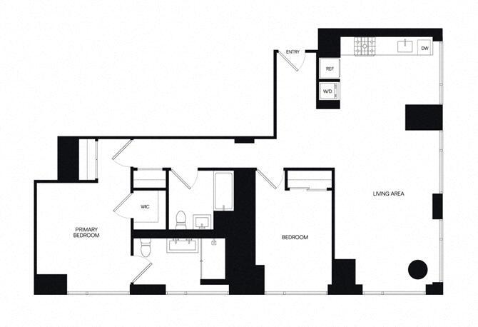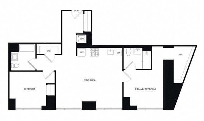 SY - Plano 1 Unidad de apartamento: 2-2623Modelo de apartamento: SYEstudio, 1 Baño, 539 sq ftDisponible AhoraSAJ Penthouse