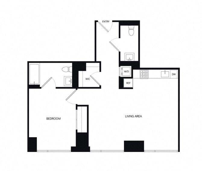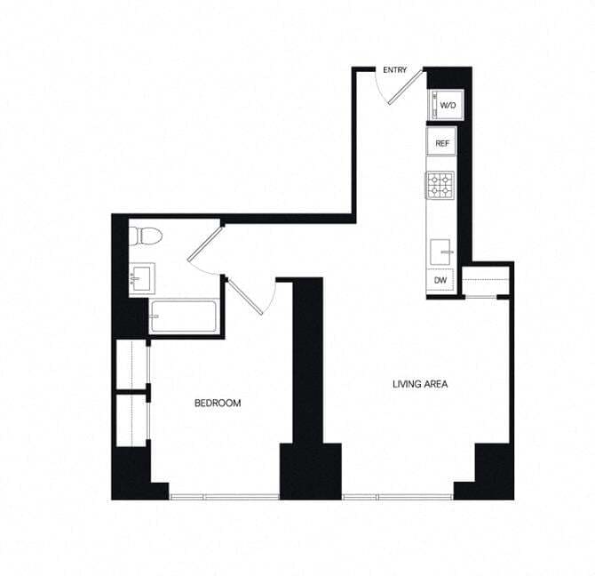 Estudio, 1 Baño, 599 pies²Disponible AhoraGalería del Modelo
