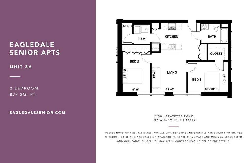 Modelo de apartamento: 2A 50% HOME2 Dormitorios, 1 Baño, 879 sq ftNo Disponible![]()