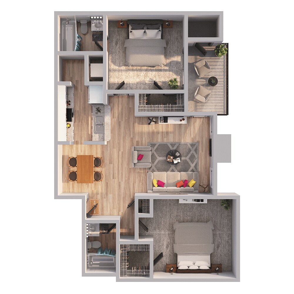 2 Dormitorios, 2 Baños, 1050 pies²Disponible AhoraGalería del Modelo