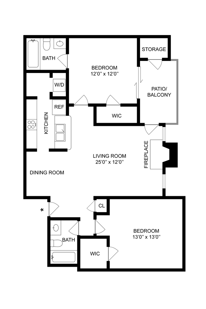 Modelo de apartamento: A2Desde $1,3301 Dormitorio, 1 Baño, 700 sq ftDisponible Ahora![]()