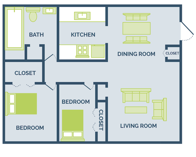 2 Dormitorios, 1 Baño, 910 pies²Galería del Modelo