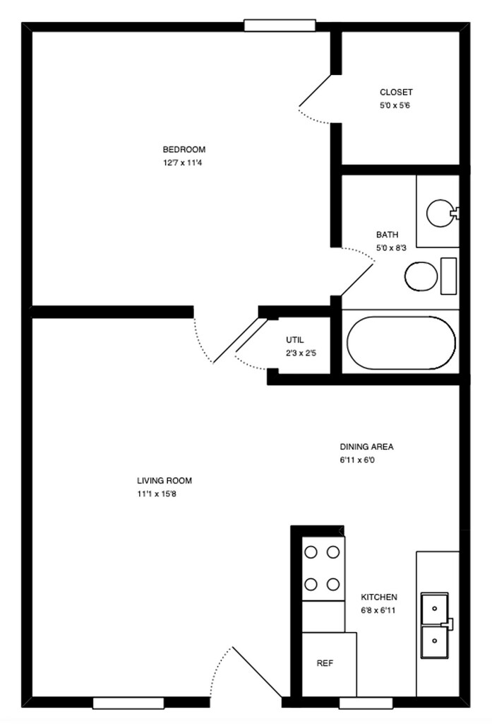 1 Dormitorio, 1 Baño, 600 pies²Galería del Modelo