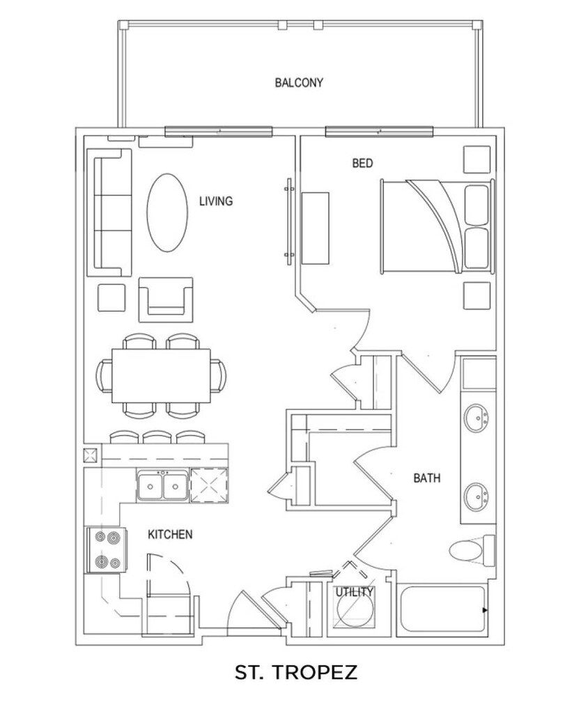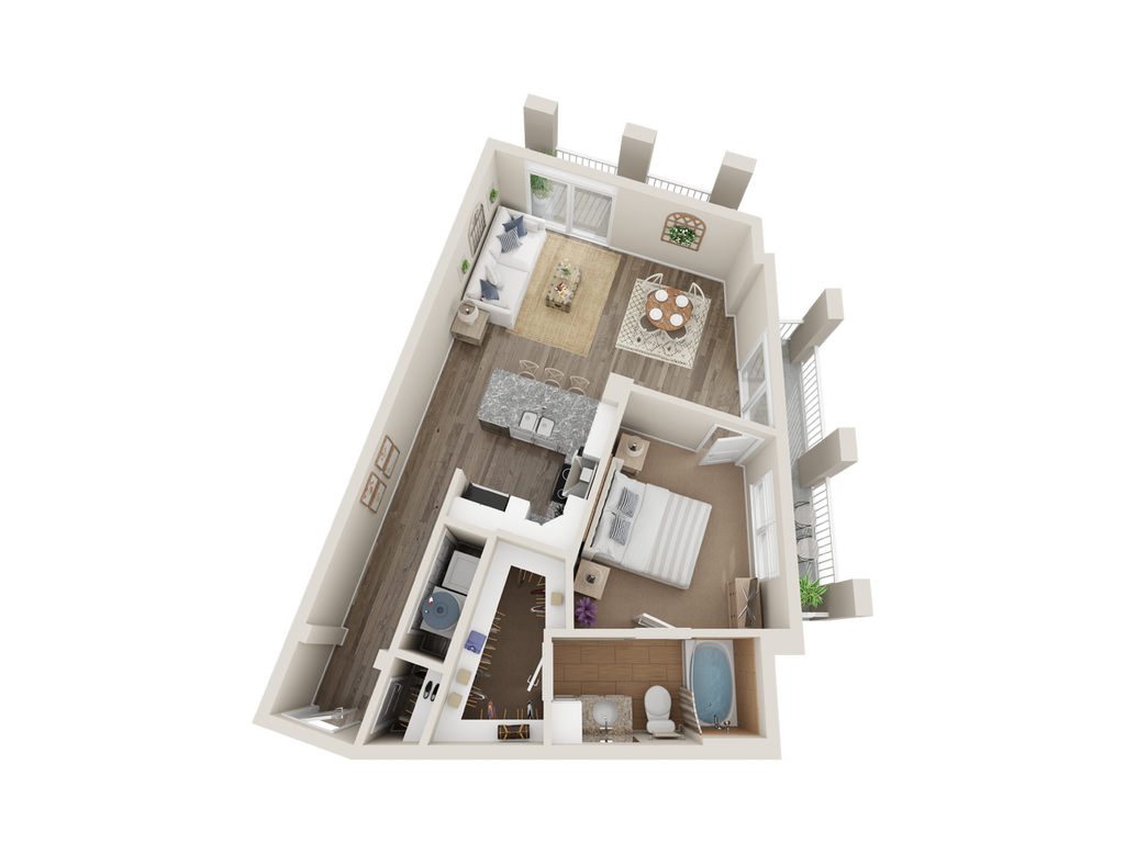 1 Dormitorio, 1 Baño, 697 pies²Disponible AhoraGalería del Modelo