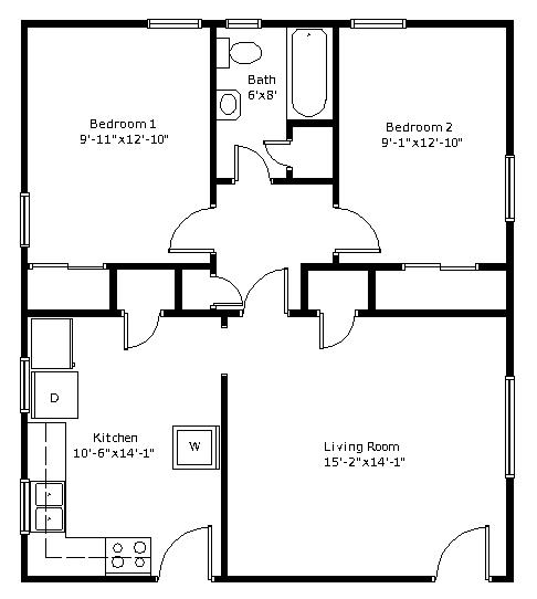 2 Dormitorios, 1 Baño, 856 pies²Galería del Modelo