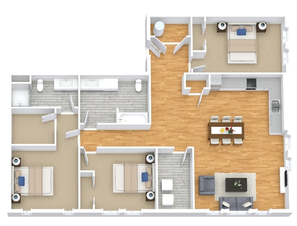 Modelo de apartamento: C1$1,3453 Dormitorios, 2 Baños, 1153 sq ftDisponible Ahora![]()