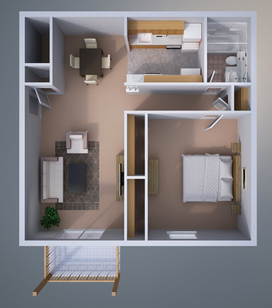 1 Dormitorio, 1 Baño, 976 pies²Disponible AhoraGalería del Modelo