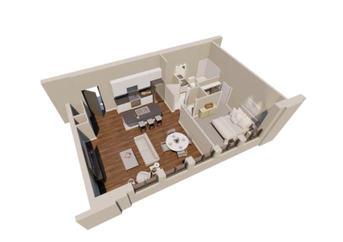 1 Dormitorio, 1 Baño, 720 pies²Disponible AhoraGalería del Modelo