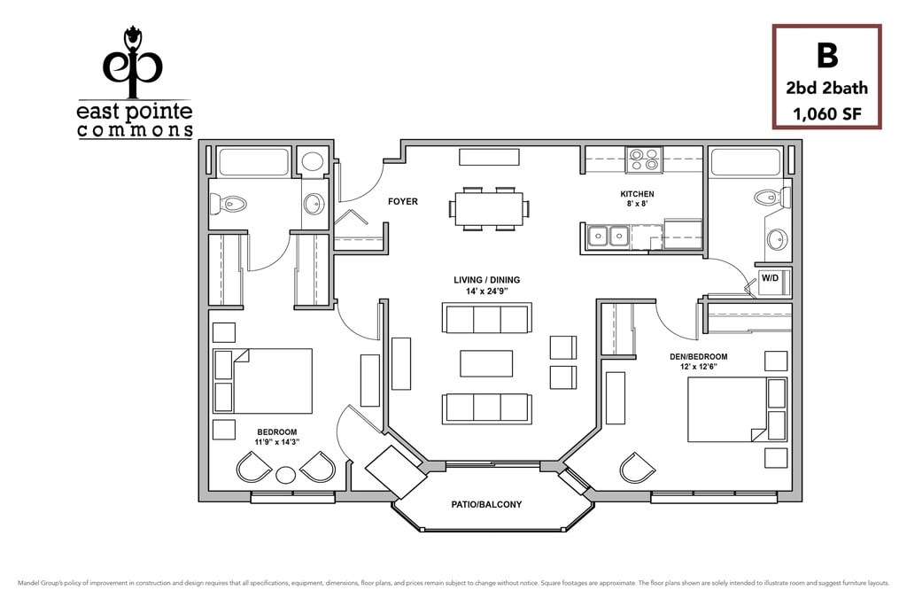 Modelo de apartamento: CDesde $1,8722 Dormitorios, 1 Baño, 1050 sq ftDisponible November 12, 2025![]()