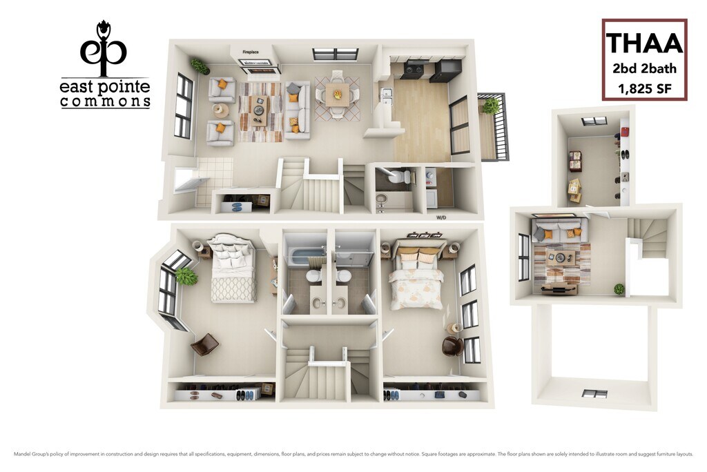 2 Dormitorios, 2.5 Baños, 1825 pies²Disponible Nov 21El más grandeEsta opción tiene las unidades más grandes para este modeloGalería del Modelo