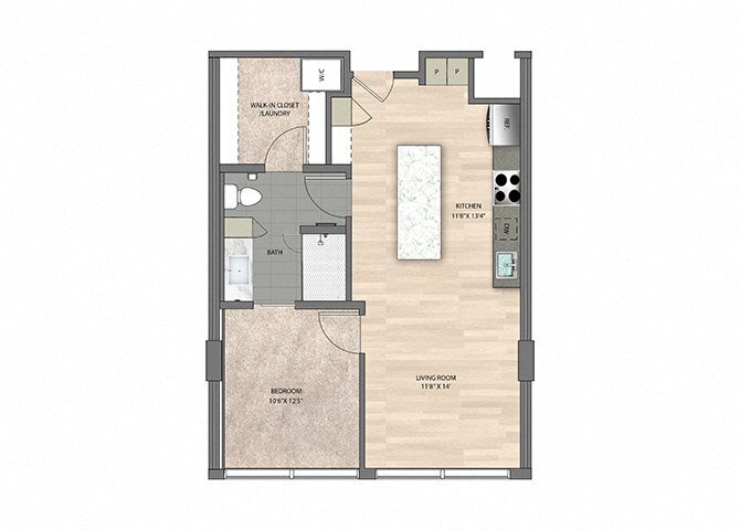 1 Dormitorio, 1 Baño, 757 pies²Precio Mensual TotalDisponible AhoraGalería del Modelo