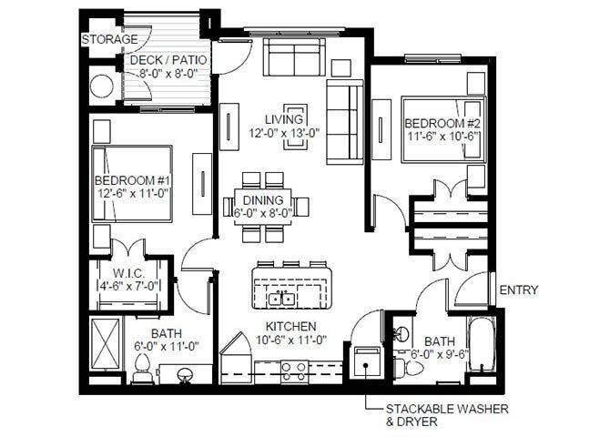 2 Dormitorios, 2 Baños, 1097 pies²Disponible AhoraGalería del Modelo