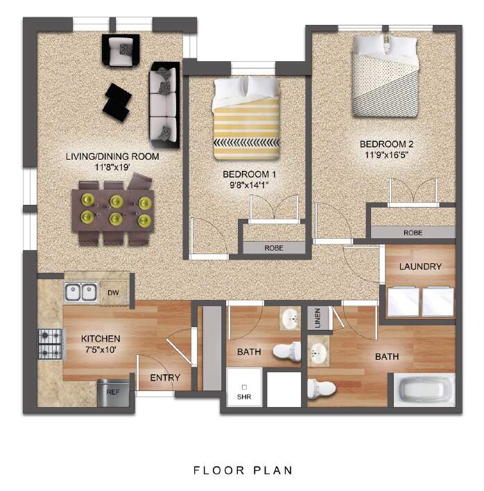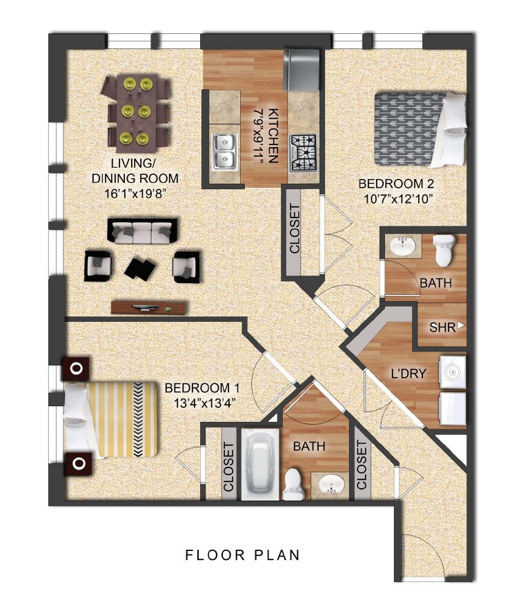 Modelo de apartamento: 2 Bedroom, Market, Spruce FloorplanDesde $1,6502 Dormitorios, 1 Baño, 1034 sq ftDisponible Ahora![]()