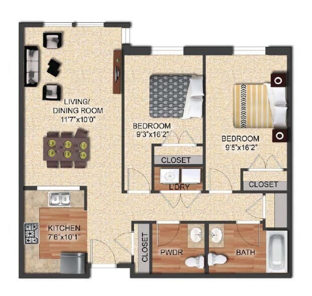 Modelo de apartamento: 1 Bedroom, Market, Willow/Walnut Floorplan$1,4501 Dormitorio, 1 Baño, 887 sq ftNo Disponible![]()
