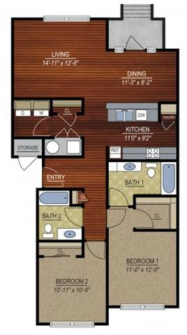 2 Dormitorios, 2 Baños, 1070-1097 pies²Disponible AhoraEl más grandeEsta opción tiene las unidades más grandes para este modeloGalería del Modelo