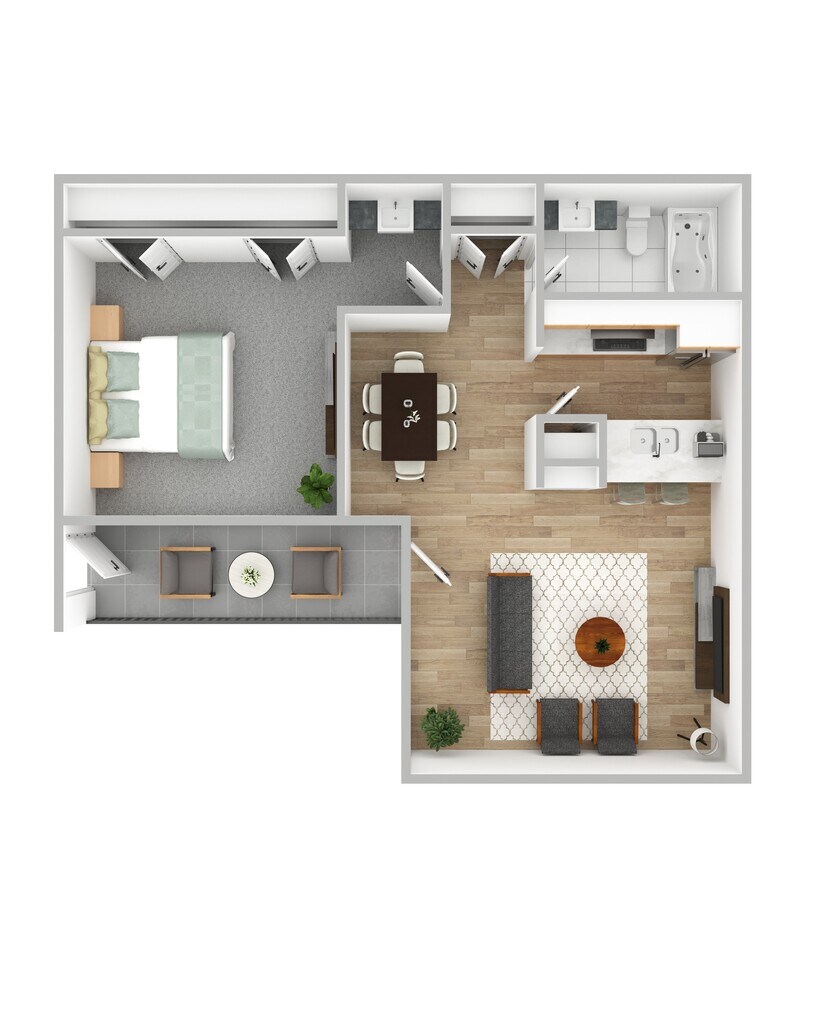 E1Q-Renovated - Plano 1 Unidad de apartamento: 2307Modelo de apartamento: E1Q-Renovated$1,240Estudio, 1 Baño, 528 sq ftDisponible Ahora1 Dormitorio