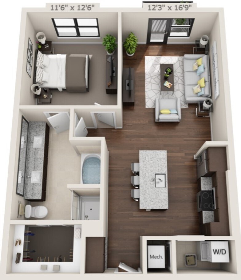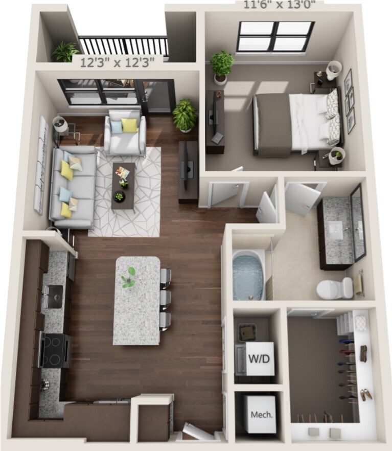 1 Dormitorio, 1 Baño, 737 pies²Disponible AhoraGalería del Modelo