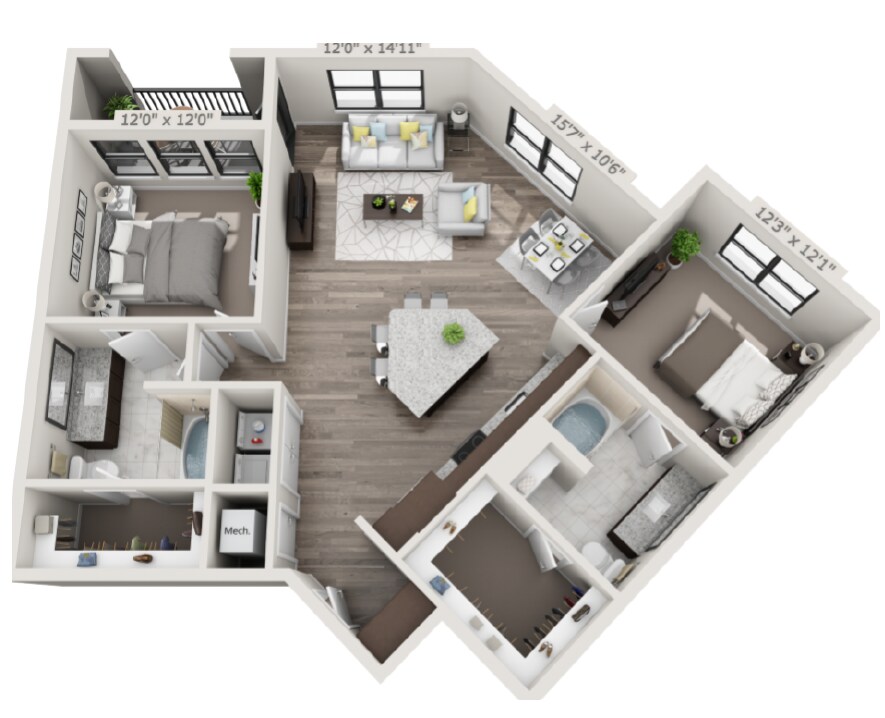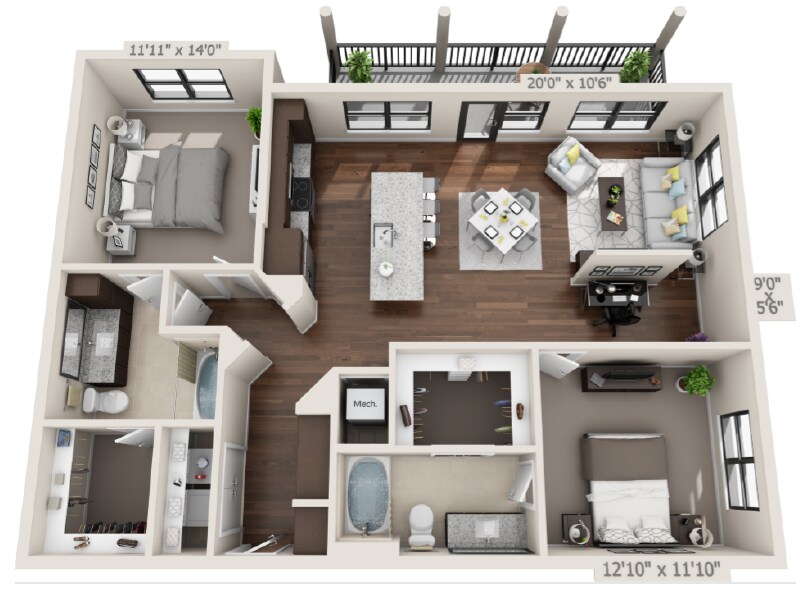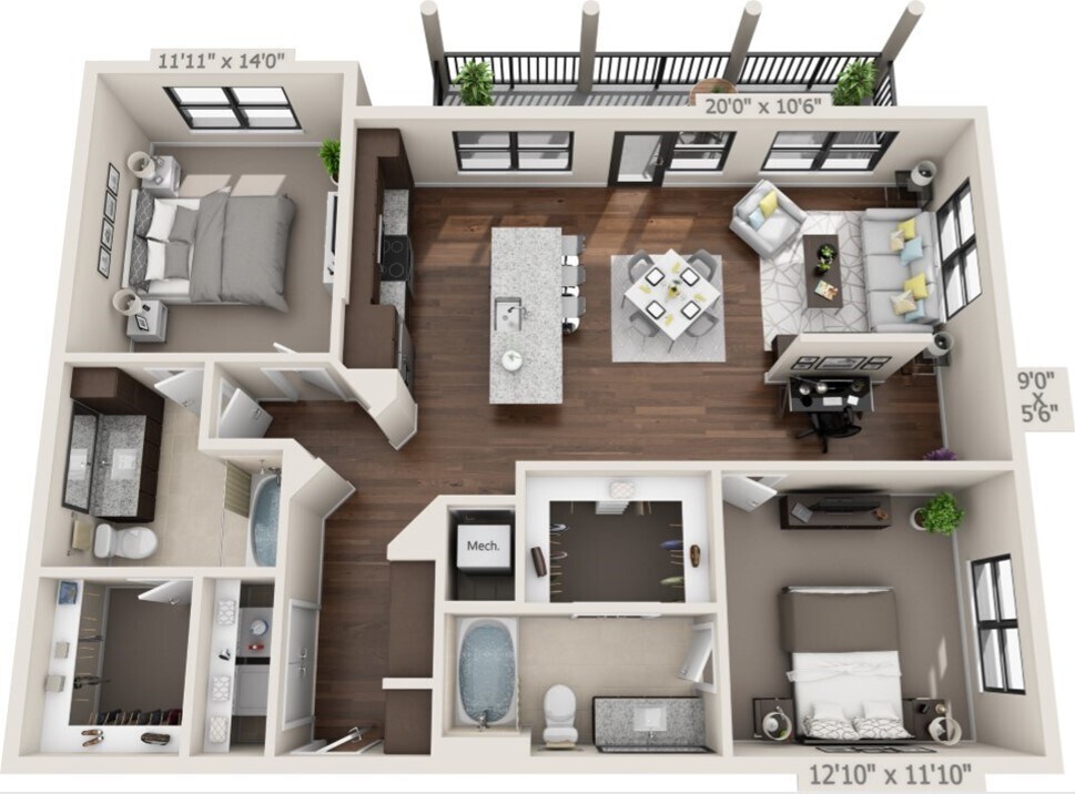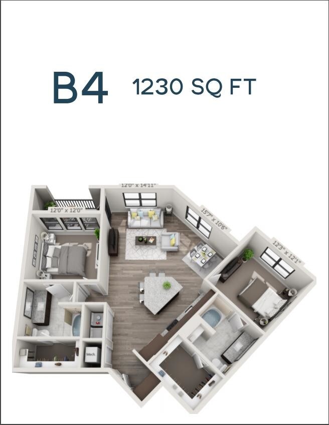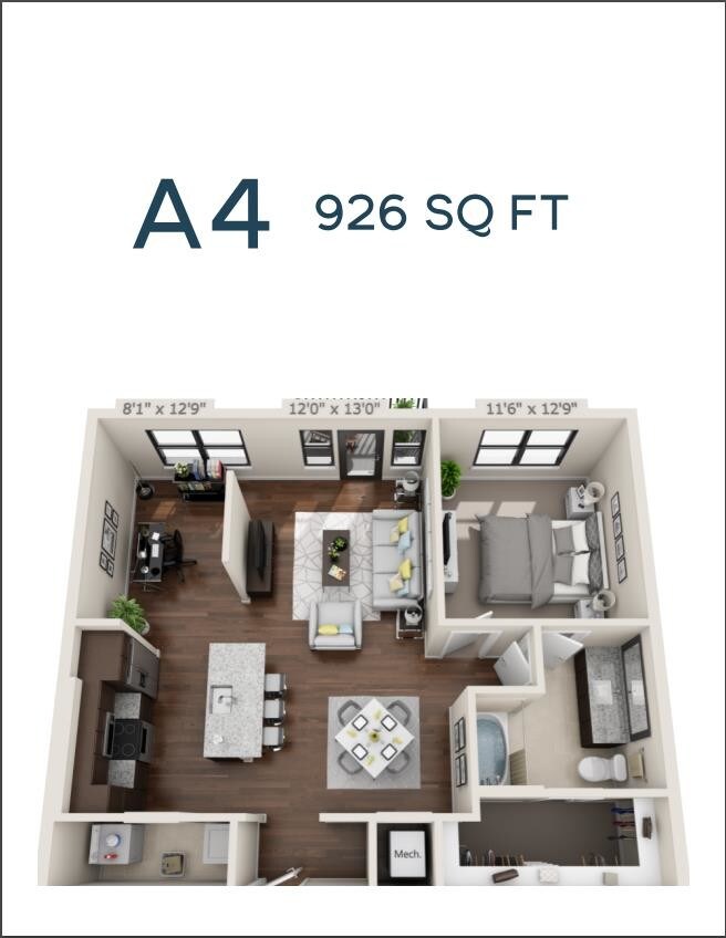 1 Dormitorio, 1 Baño, 926 pies²Disponible AhoraGalería del Modelo