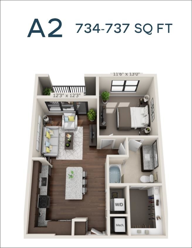 Modelo de apartamento: A2$1,5721 Dormitorio, 1 Baño, 737 sq ftDisponible AhoraLos planos de la planta son una interpretación artística. Todas las dimensiones son aproximadas. Los tamaños o el detalle del producto real y sus especificaciones pueden variar. No todas las características están disponibles en todos los hogares para rentar. Los precios y la disponibilidad están sujetos a cambios. El alquiler que se muestra es mensual. Se pueden aplicar ciertos cargos, por ejemplo, entrega de paquetes, recolección de basura, agua, servicios, etc. Depositos varian. Consulta a un representante para conocer detalles.