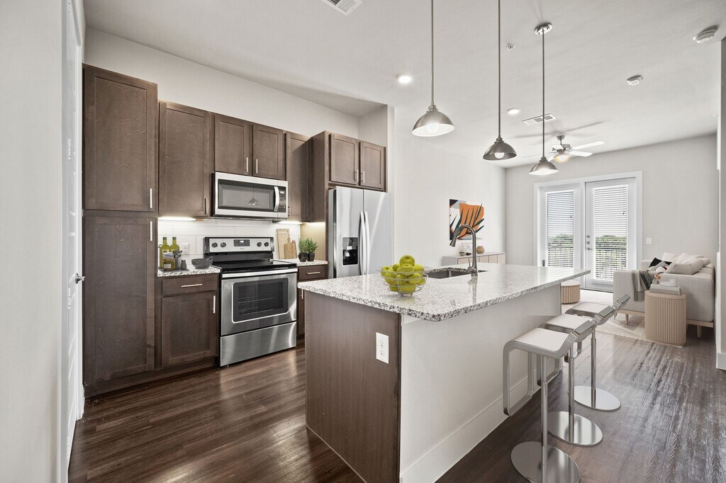 Echa un vistazo a nuestras codiciadas casas adosadas de 3 habitaciones y haz un recorrido hoy mismo en Eastbank Riverwalk. Eastbank Riverwalk ofrece apartamentos lujosos de una y dos habitaciones y casas adosadas de tres habitaciones en el recientemente desarrollado Riverwalk at Central Park en Flower Mound, Texas. En el corazón de Flower Mound, ofrecemos acceso inmediato a FM 2499 y Cross Timbers. Nuestro complejo cuenta con un gimnasio de avanzada, garajes adjuntos, pisos de madera, lavabos simples, un salón al aire libre en la azotea con vistas al impresionante River Walk Development, y mucho más. Eastbank Riverwalk Apartments ofrece un oasis suburbano para aquellos que deseen escapar del ritmo acelerado de Dallas, pero aun así disfrutar de restaurantes y lugares de entretenimiento.