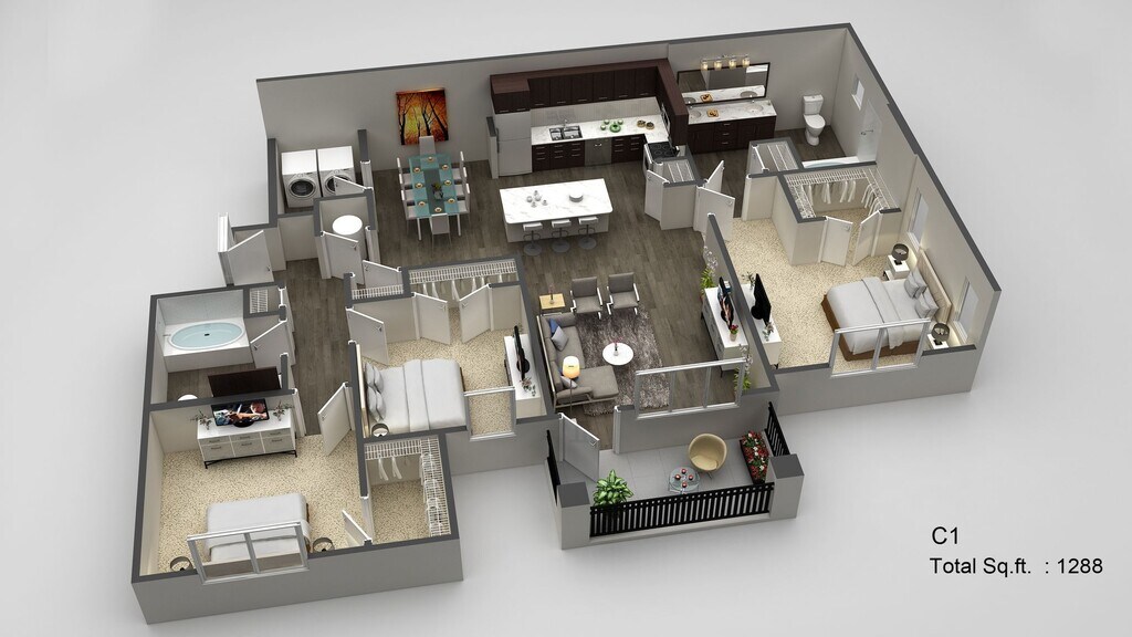 1 Dormitorio, 1 Baño, 747 pies²Disponible AhoraGalería del Modelo