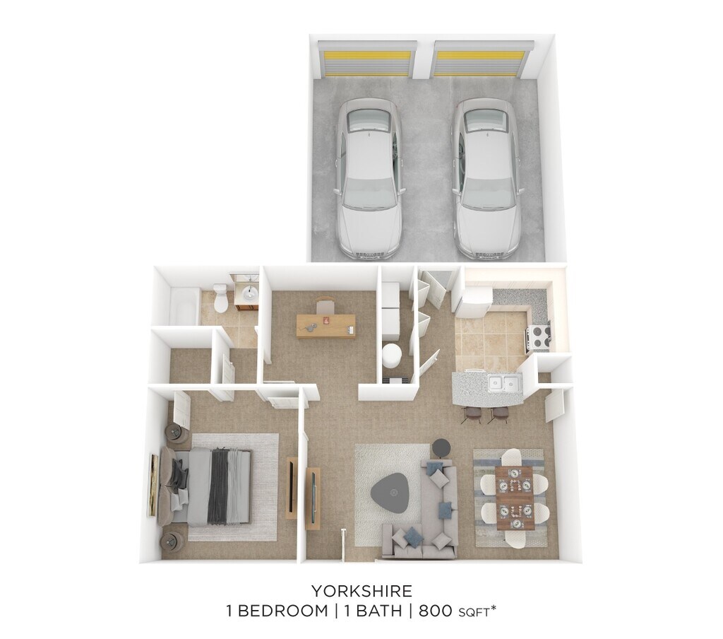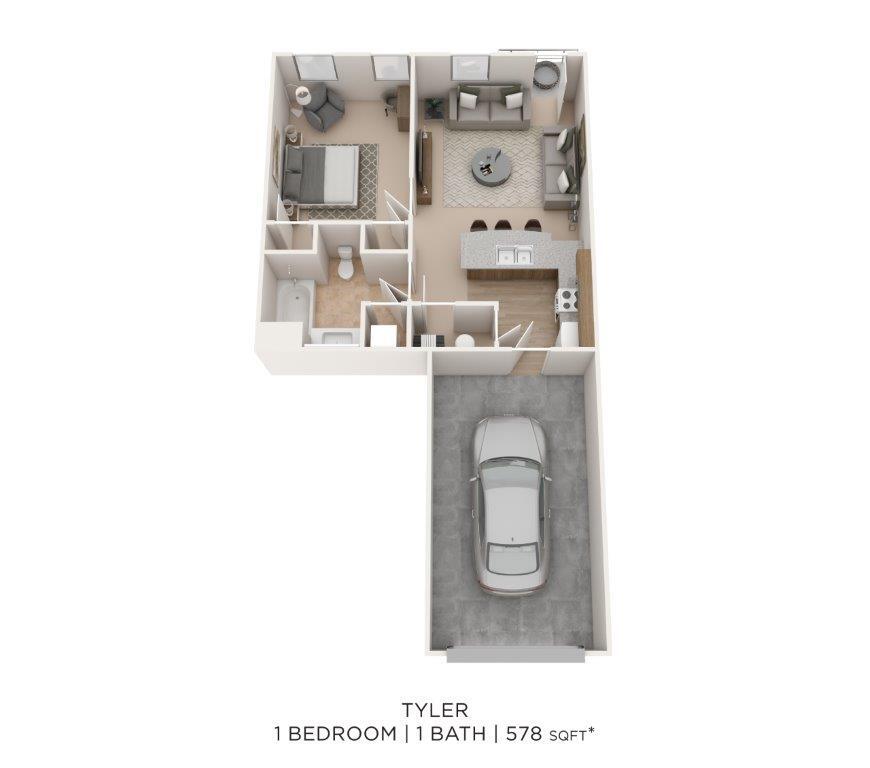 1 Dormitorio, 1 Baño, 847 pies²Disponible AhoraGalería del Modelo