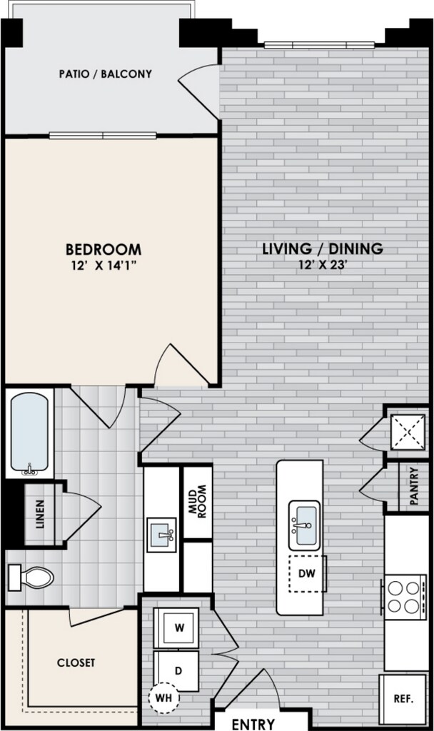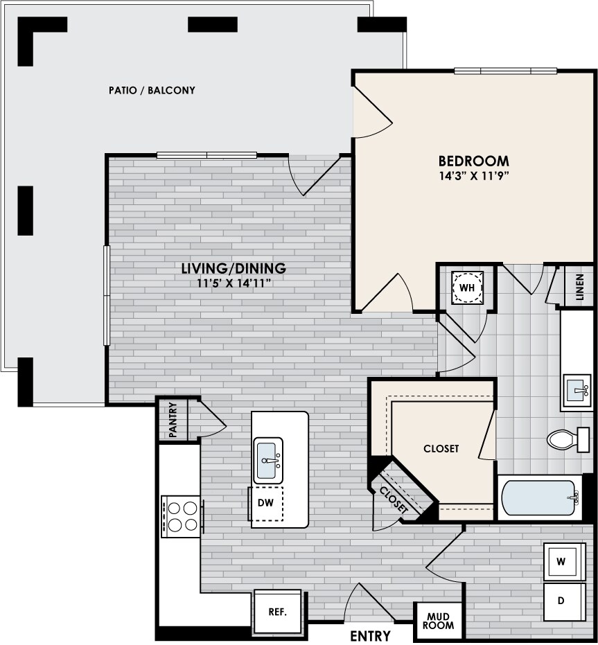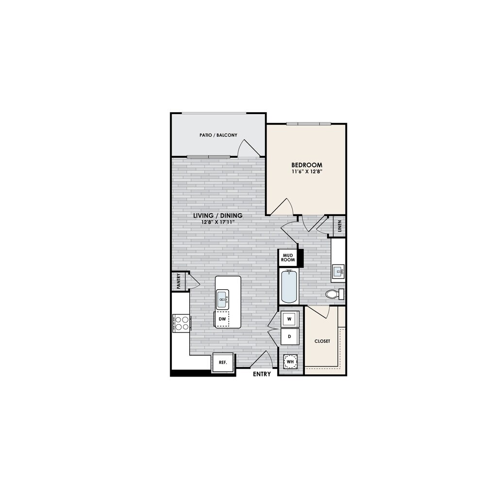 Modelo de apartamento: A1BLlame para Precios1 Dormitorio, 1 Baño, 754 sq ftDisponible Ahora![]()