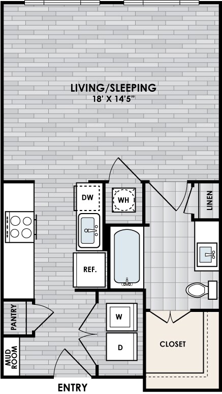S1B - Plano 1 Unidad de apartamento: 3037Modelo de apartamento: S1BLlame para PreciosEstudio, 1 Baño, 625 sq ftDisponible December 1, 20251 Dormitorio