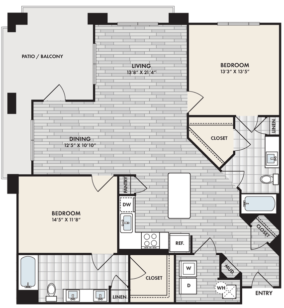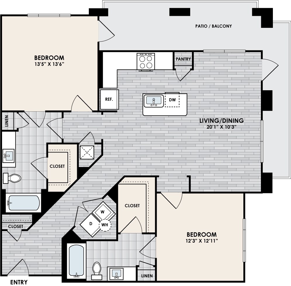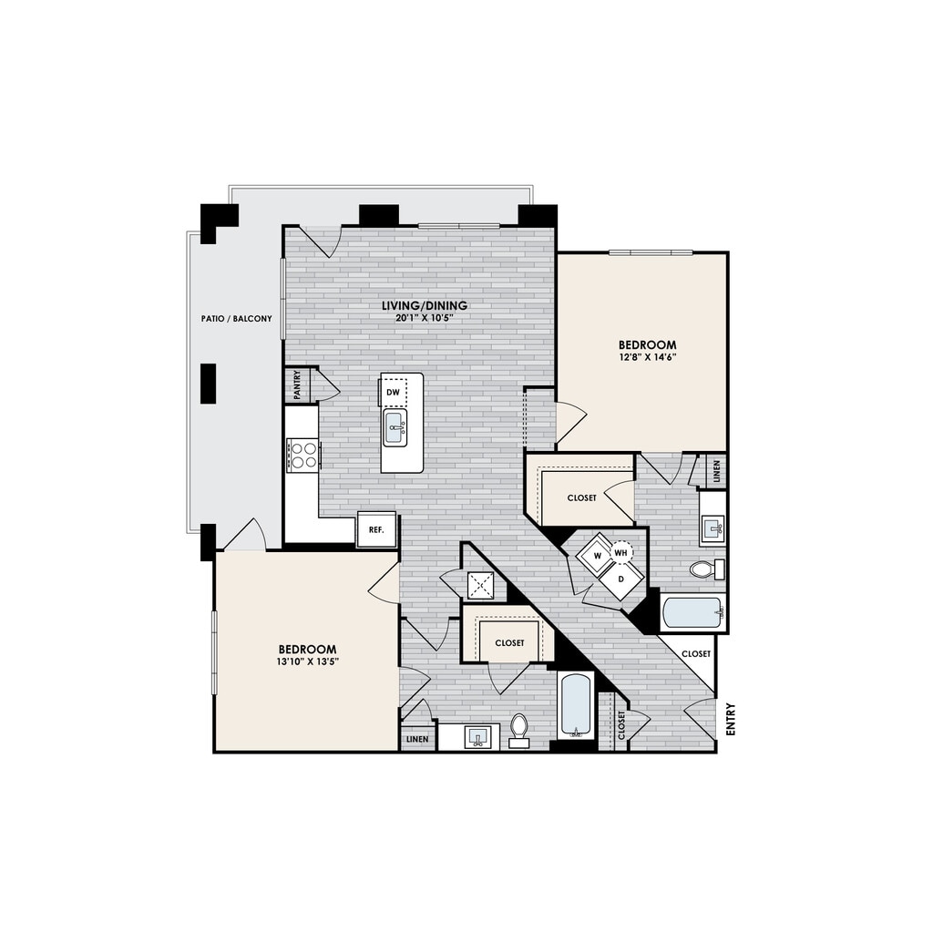 1 Dormitorio, 1 Baño, 874 pies²Disponible AhoraEl más grandeEsta opción tiene las unidades más grandes para este modeloGalería del Modelo