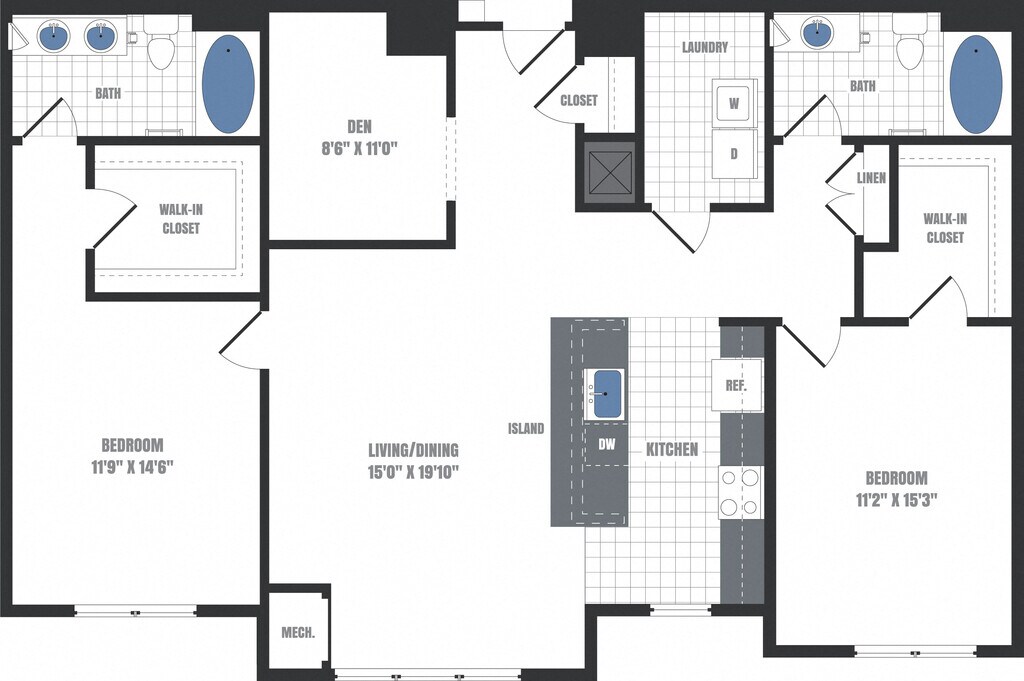A1-ANSI - Plano Unidad de apartamento: 211AModelo de apartamento: A1-ANSI$2,0231 Dormitorio, 1 Baño, 752 sq ftDisponible AhoraPlano: A3