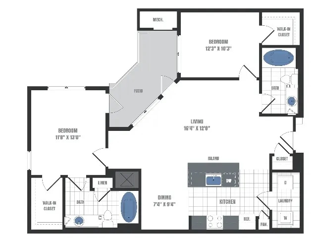 Modelo de apartamento: A3Desde $2,0571 Dormitorio, 1 Baño, 719 sq ftDisponible AhoraLos planos son representaciones artísticas. Todas las dimensiones son aproximadas. El producto y las especificaciones reales pueden variar en tamaño o detalle. No todas las características están disponibles en cada vivienda en alquiler. Por favor, consulta con un representante para obtener más detalles.