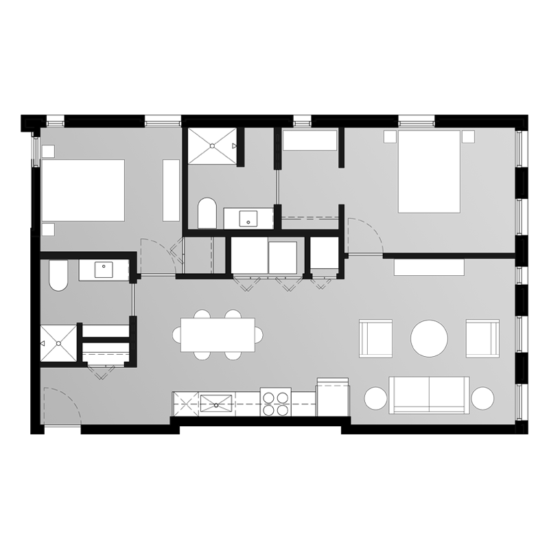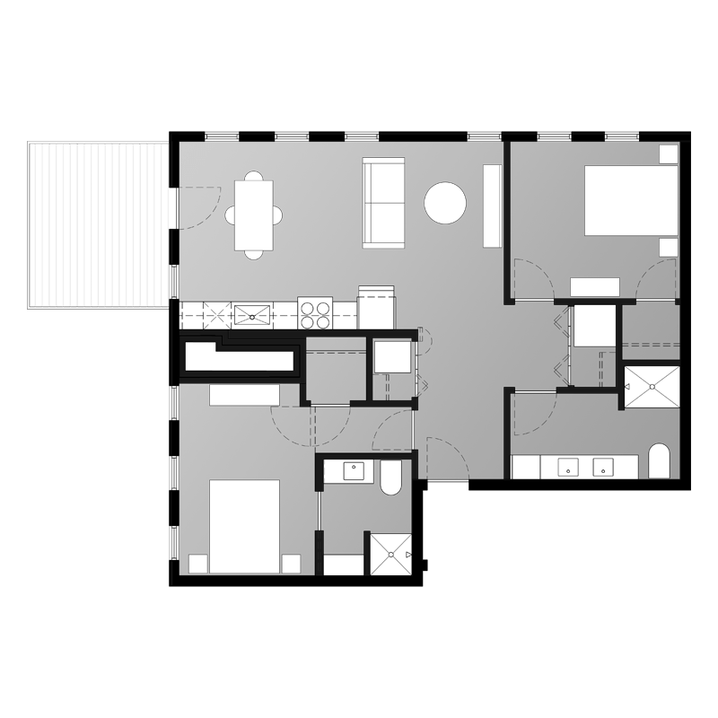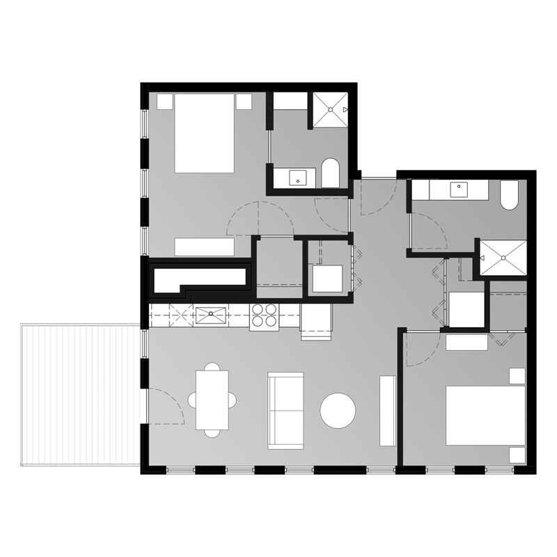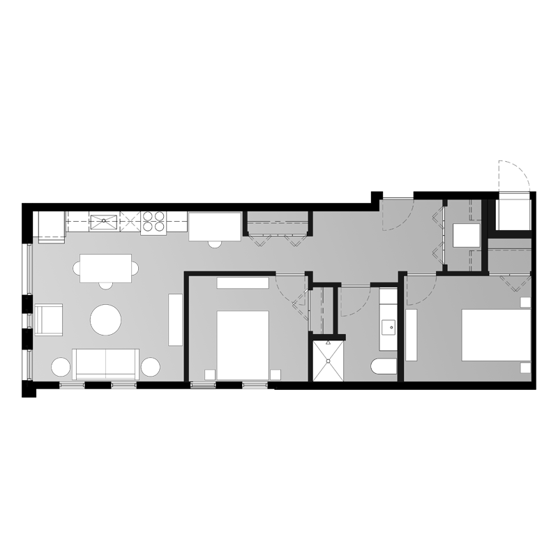 2B - Plano 2 Unidad de apartamento: 404Modelo de apartamento: 2B$1,6952 Dormitorios, 2 Baños, 1025 sq ftDisponible AhoraPlano: P01