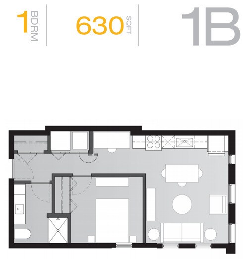 1 Dormitorio, 1 Baño, 630 pies²Galería del Modelo