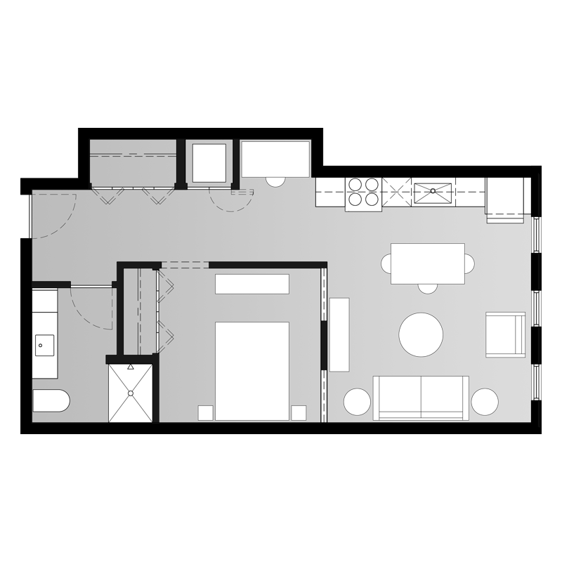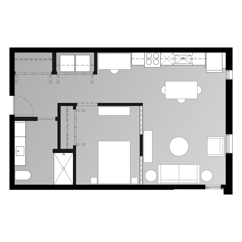 Estudio, 1 Baño, 450 pies²Disponible AhoraGalería del Modelo