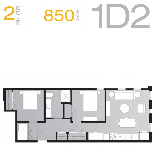 Modelo de apartamento: 1D2$1,3951 Dormitorio, 1 Baño, 850 sq ftNo Disponible![]()