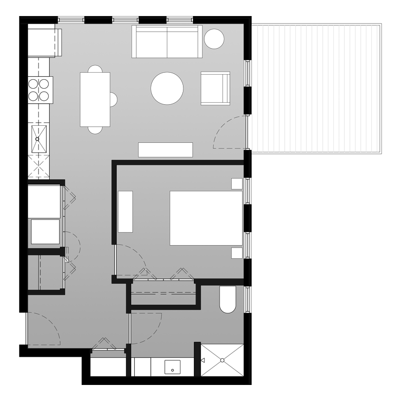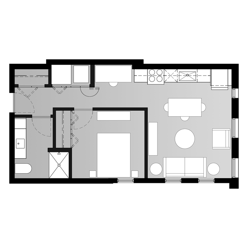 1 Dormitorio, 1 Baño, 710 pies²Galería del Modelo
