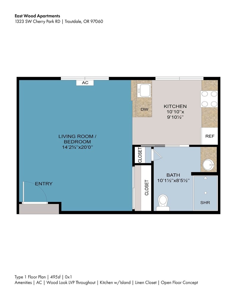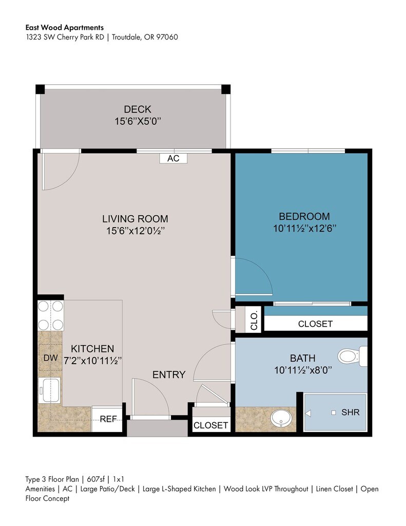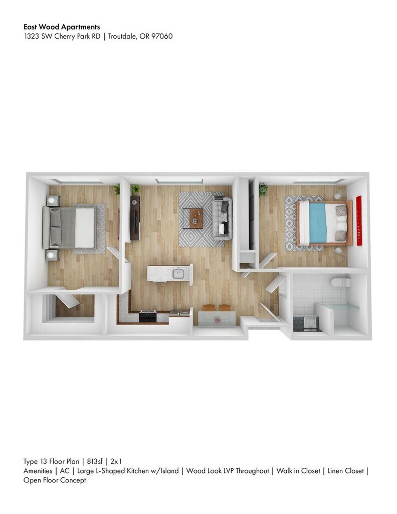 Find your perfect fit in our beautifully designed studio, one-, and two-bedroom apartments, offering all the modern comforts you need in a community connected to both nature and the heart of Troutdale. Eastwood places you close to it all: stroll to downtown Troutdale’s charming shops and the vibrant new Troutdale Station food cart hub, or head just minutes away to Edgefield McMenamins, a local landmark with live concerts, multiple restaurants and bars, a spa, and even a par-3 golf course. And with the Columbia River Gorge just beyond, outdoor adventure is always within reach. When you’re home, you’ll enjoy amenities designed to enhance your lifestyle. Stay active in the fully equipped fitness center or stretch out in the yoga room. Catch a film in the private theater, work remotely in our dedicated coworking space, or gather with friends in the lounge and game room. Pet parents will love the convenient on-site pet wash station, and extra storage is simple with rentable storage units, bike racks, and secure package lockers. At Eastwood, modern living meets small-town charm, offering not just a home, but an experience.