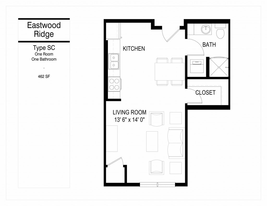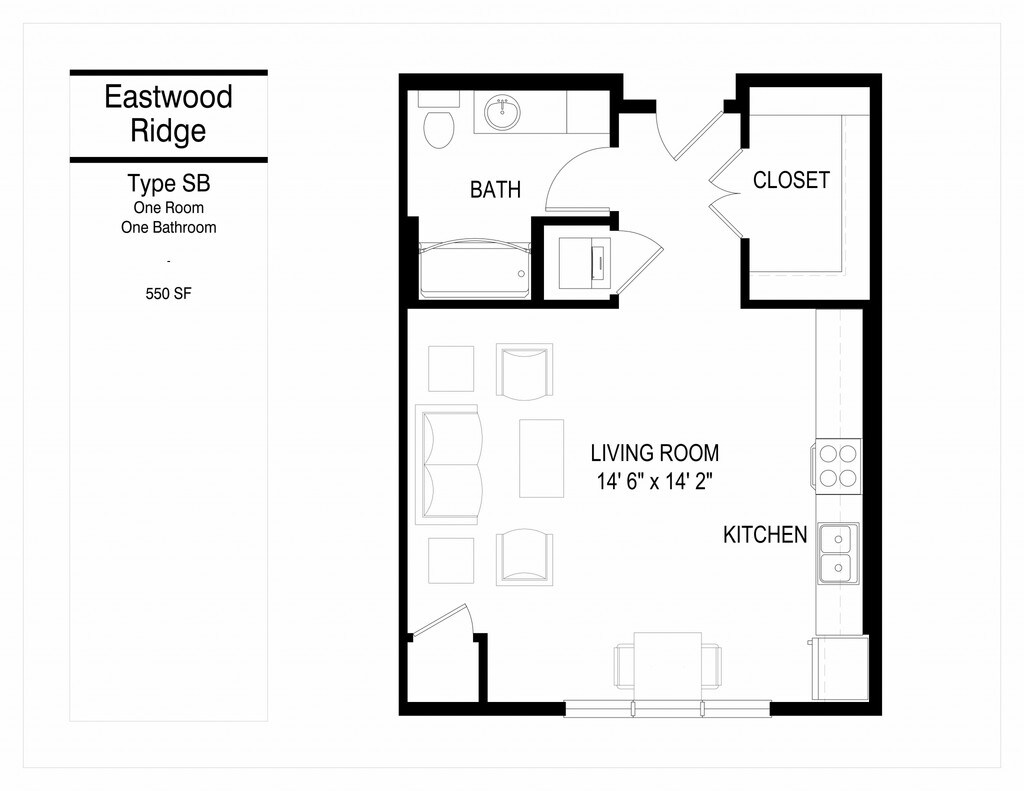 Estudio, 1 Baño, 550 pies²Galería del Modelo