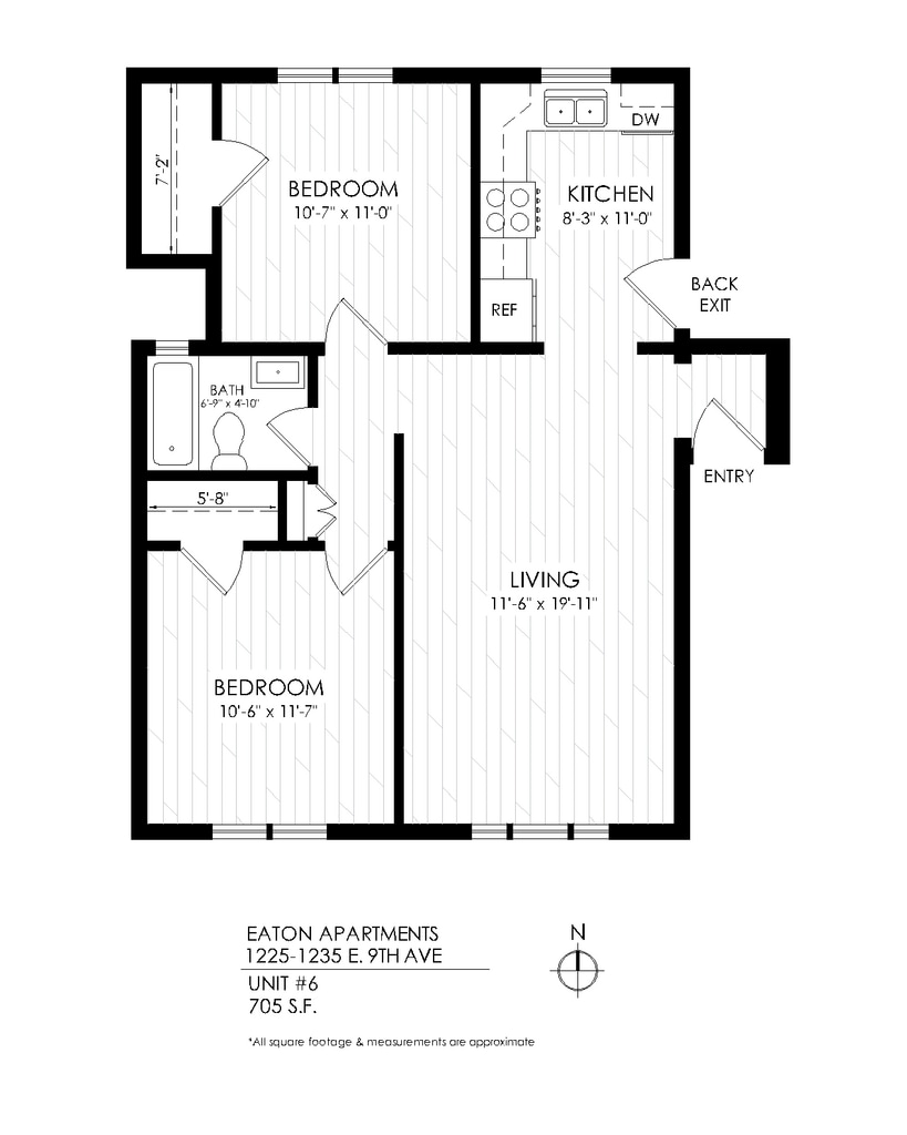 2 Dormitorios, 1 Baño, 705 pies²Disponible AhoraGalería del Modelo