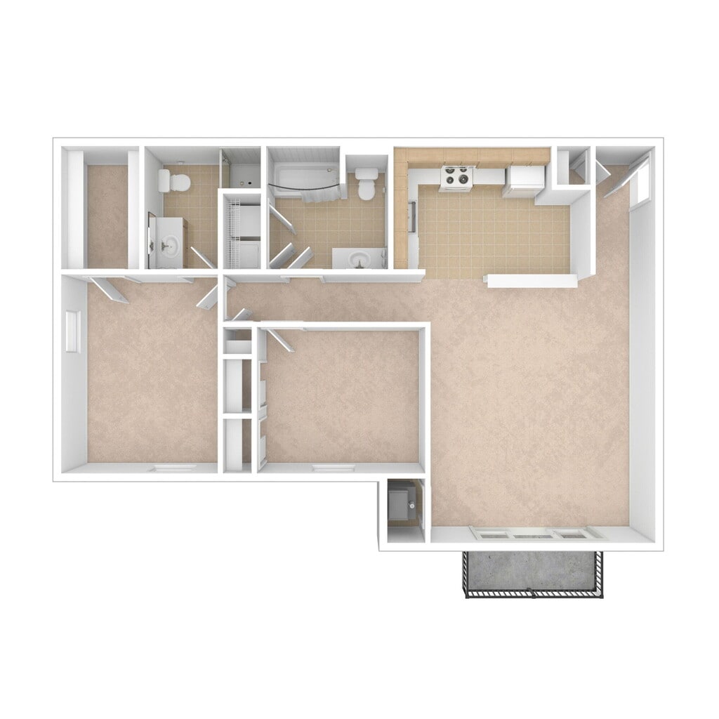 2 Dormitorios, 1 Baño, 1049 pies²Disponible AhoraEl más baratoEsta opción tiene los precios más bajos para este modeloGalería del Modelo